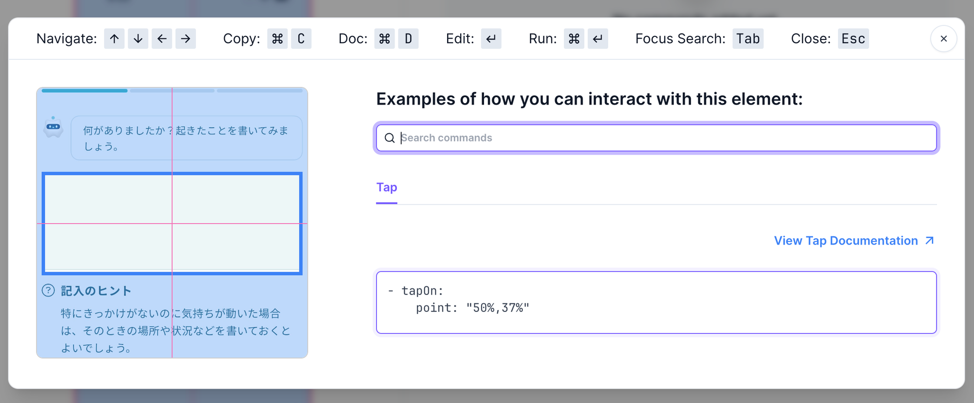 基本的には、公式ドキュメントを読むことでテストを作成、実行できたのですが、いくつか手こずる場面がありました。Tipsとして残しておきます。